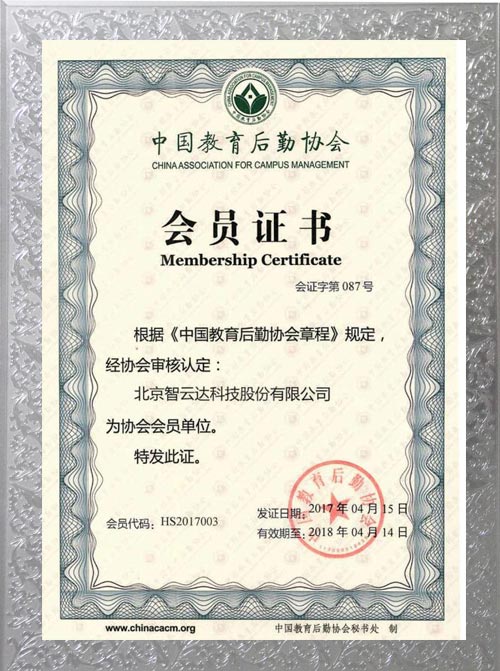 中國教育后勤協會會員證書