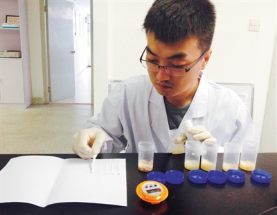 結(jié)果顯示6種樣品的試紙顏色都沒有發(fā)生變化。“沒有變色,說明這些泡椒鳳爪里都不含違禁的雙氧水”,于勇說,如果試紙變成藍(lán)綠色,才有可能加了雙氧水,試紙顏色越深,含量越高。