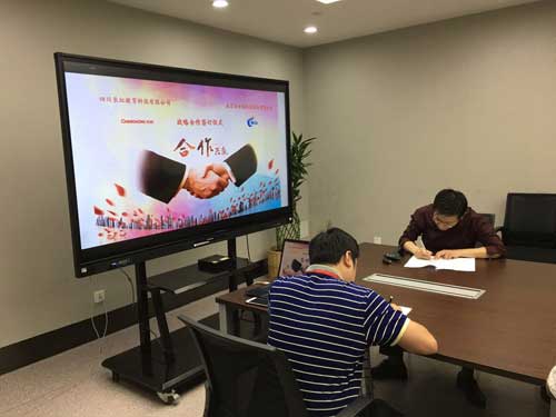 2016年5月9日,北京智云達科技股份有限公司(以下簡稱:北京智云達)與四川長虹在長虹科技大廈正式簽訂戰略合作協議。雙方經過兩年的溝通交流,現成為正式戰略合作伙伴,將在“智慧城市”、“智慧教育”等方向展開合作,攜手讓城市級“智慧食安”概念逐步落到實處。