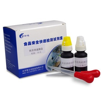 健康畜禽肌肉組織中含有過氧化物酶,當畜禽因疾病發(fā)生高度機體障礙而死亡或被急殺時,過氧化物酶含量會減少甚至消失。本速測盒以過氧化物酶為檢測目標,采用目測比色法的原理,通過觀察顏色變化來判定是否是病害肉。