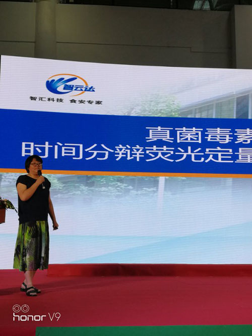 在糧油產(chǎn)品及設(shè)備技術(shù)館的大廳,同期舉辦了由福建省糧食局主辦、福建省糧食行業(yè)協(xié)會協(xié)辦的“第十四屆糧食產(chǎn)銷協(xié)作福建洽談會—糧油科技和設(shè)備技術(shù)項(xiàng)目推薦會”。智云達(dá)的王文珺博士在推薦會上介紹了我司自主研發(fā)的真菌毒素時間分辯熒光定量檢測系統(tǒng)。我司的真菌毒素時間分辯熒光定量檢測系統(tǒng)今年三月通過了國糧局的專家驗(yàn)證,并列入了國糧局推薦產(chǎn)品目錄。